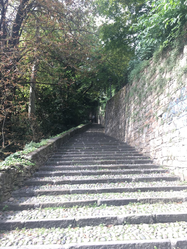 De qualquer forma, o transporte público é muito acessível e tem diversas linhas e horários que levam até o centro da Cidade Alta. Ainda existe a opção de ir até o bondinho (Funicolare) que dá acesso à Cidade Alta e subir por ele (vale muito a vista). É possível subir também pelas escadas ao lado do bondinho sem pagar nada, mas o físico tem que estar preparado – é uma bela subida, em todos os sentidos. Estando lá em cima, divirta-se, toda ruela tem seu charme e de passo em passo você encontra uma praça incrível, uma linda igreja e um delicioso restaurante, mas não deixe de passar pela Piazza Vecchia, a Basílica de Santa Maria Maggiore, o Duomo, o Museu de Ciência Natural, a Torre Cívica e o Castello di San Vigilio (para ir até o castelo você pode pegar um segundo bondinho para economizar tempo e pernas). Uma dica culinária é provar a polenta tradicional da região chamada Taragna com uma salamella bergamasca, um lugar em especial ganhou nosso coração e estômago: o Polentone, vale a pena conferir!