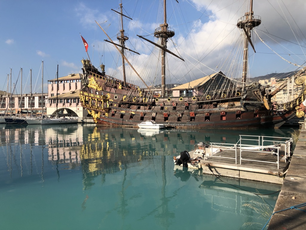 O Galeone Neptune, uma réplica dos navios de guerra do século XVII e que pode ser visitado em Genova