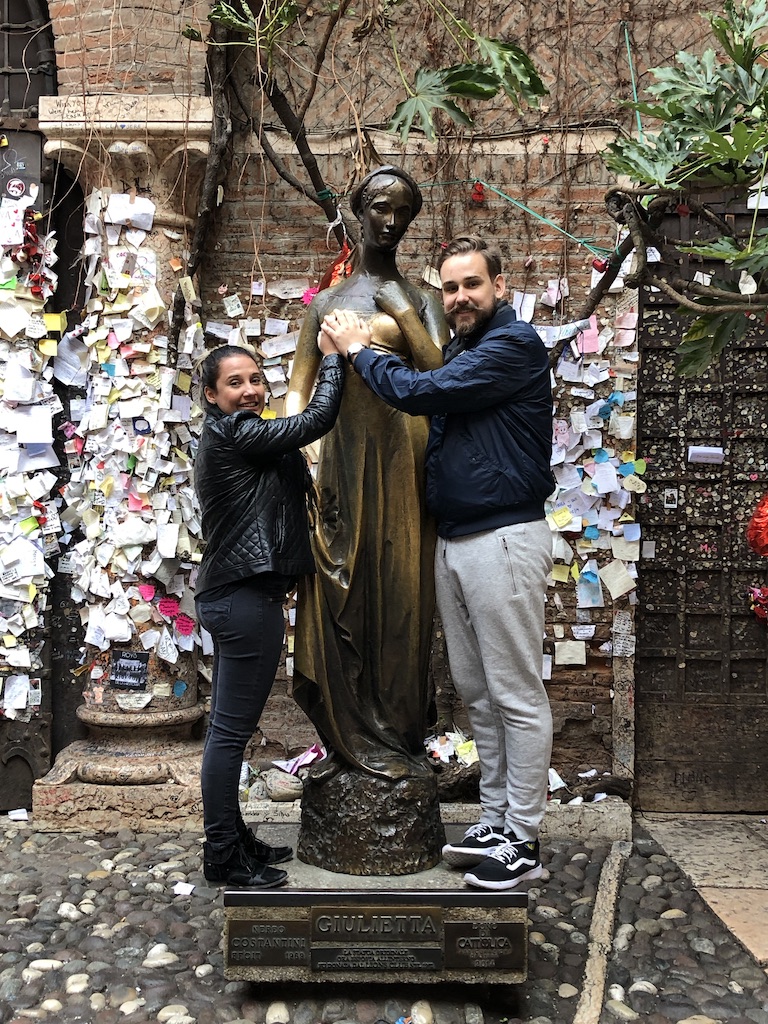 Seguindo as tradições na estátua da Julieta