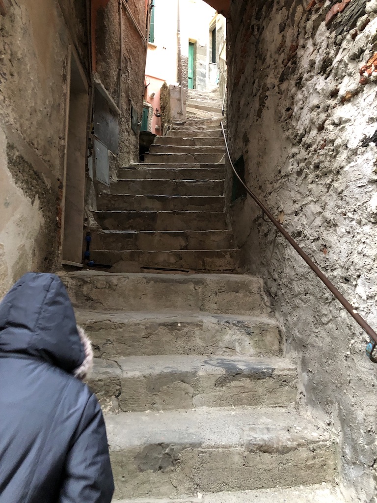 Nas Cinque Terre, por conta do relevo acidentado, muitas vezes as “ruas” são substituídas por escadas!
