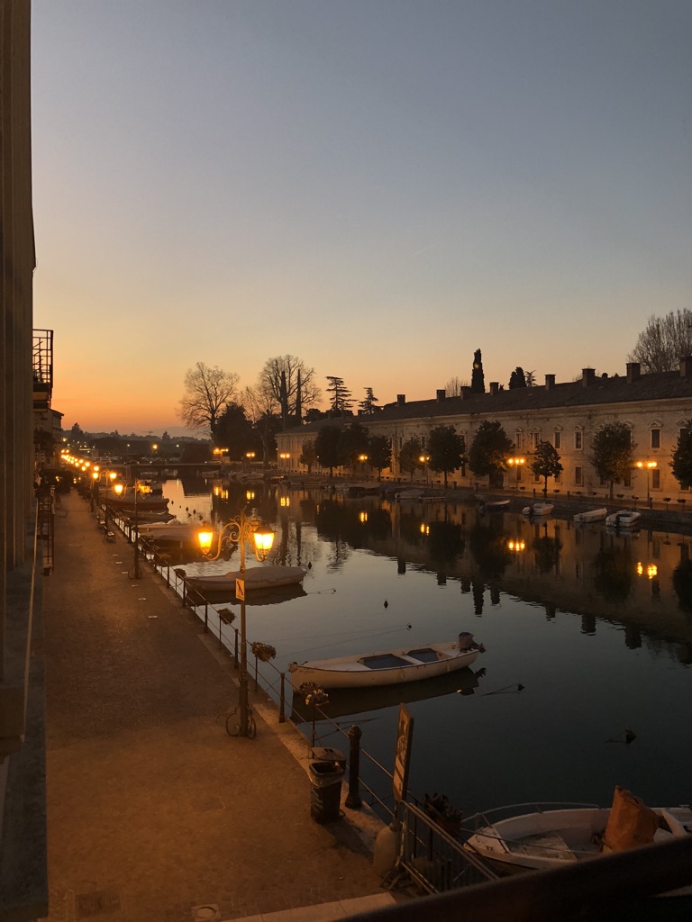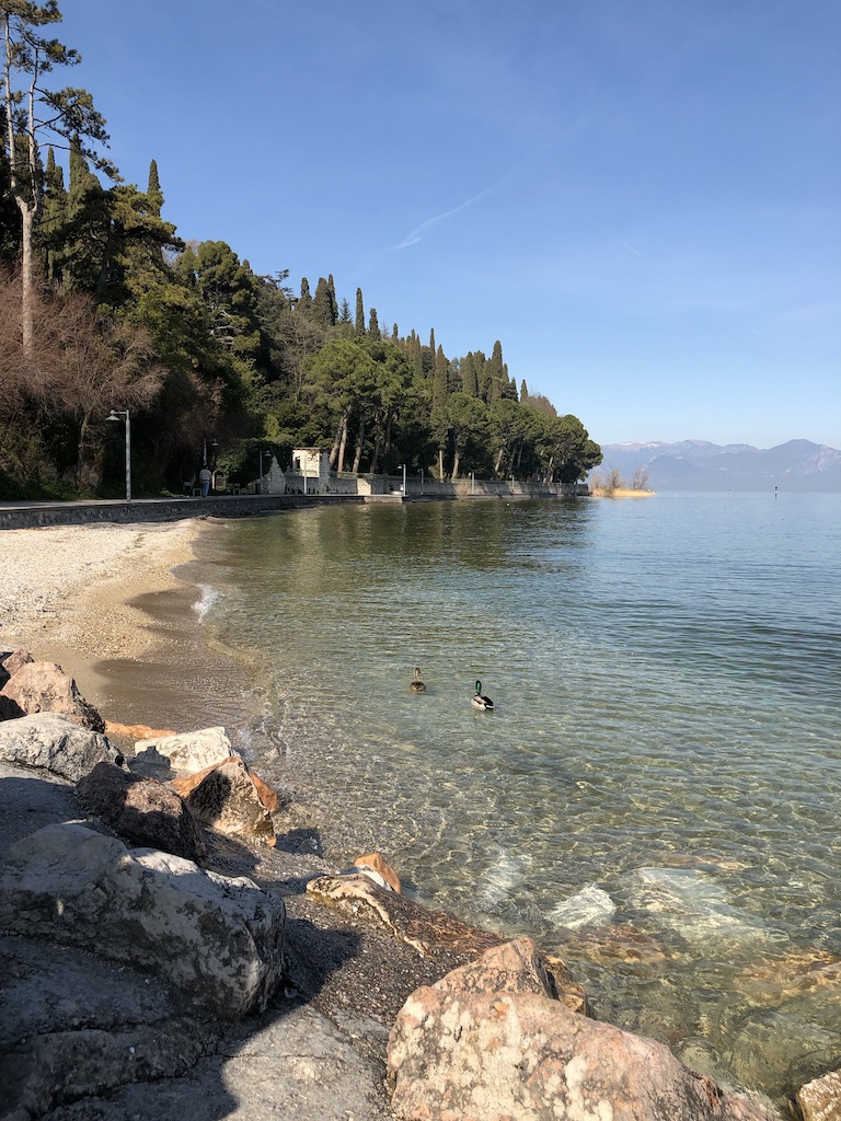 No quinto dia da viagem, ao sair de Bergamo logo cedo pela manhã você tem duas opções. A nossa recomendação é, se estiver de carro, seguir para o lago, passando por Desenzano del Garda (mais agitada e badalada, com bons bares e cafés – você pode deixar para tomar o café da manhã por aqui), Sirmione (que parece ter saído de um filme, com sua bela muralha e castelo que guardam uma cidade gracinha com vistas incríveis do lago) e por fim Peschiera Del Garda (particularmente minha preferida -Pati-, foi onde o Lucas me pediu em casamento ao pôr-do-sol).