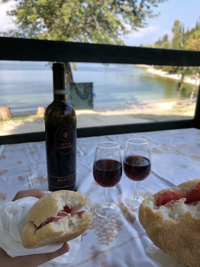 Um lanchinho a beira do Lago di Iseo